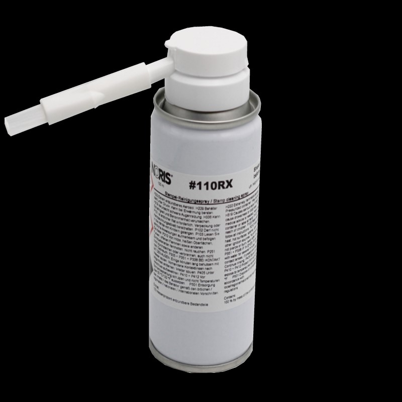 Univerzální čisticí spray (s kartáčkem) pro razítka s gumovým, polymerovým nebo kovovým štočkem při použití barev na bázi vody, lihu i oleje. Roztok odstraní všechny zbytky inkoustu.
