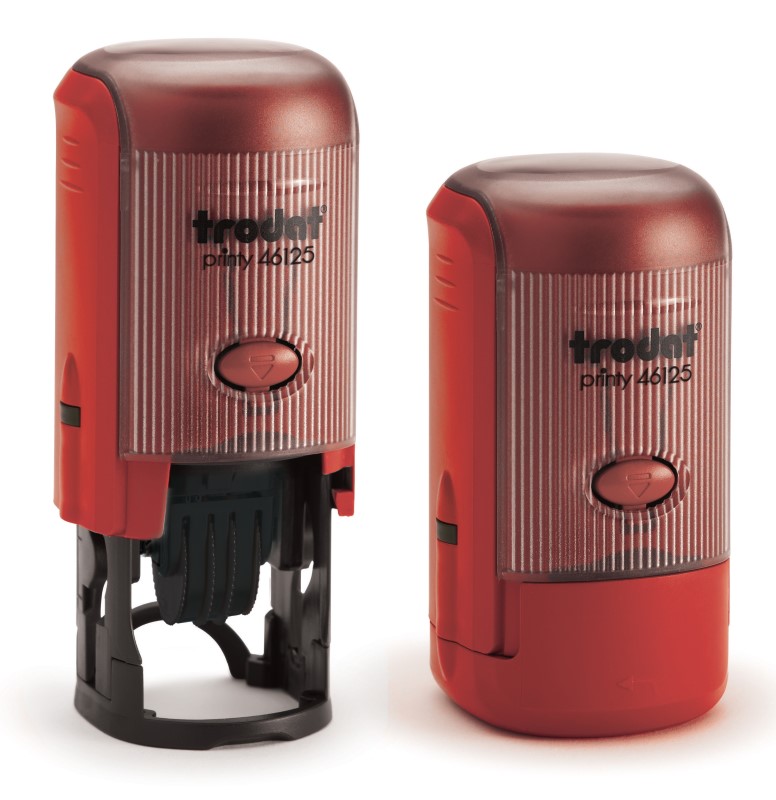 Plastové kulaté datové samobarvicí razítko s kruhovou textovou deskou velikosti D=25mm. Výška data: 2,8 mm. Typ otisku: 12-08-2050 Barva otisku: černá, modrá, červená, zelená, fialová a modrá+červená. Náhradní polštářek: 6/46025